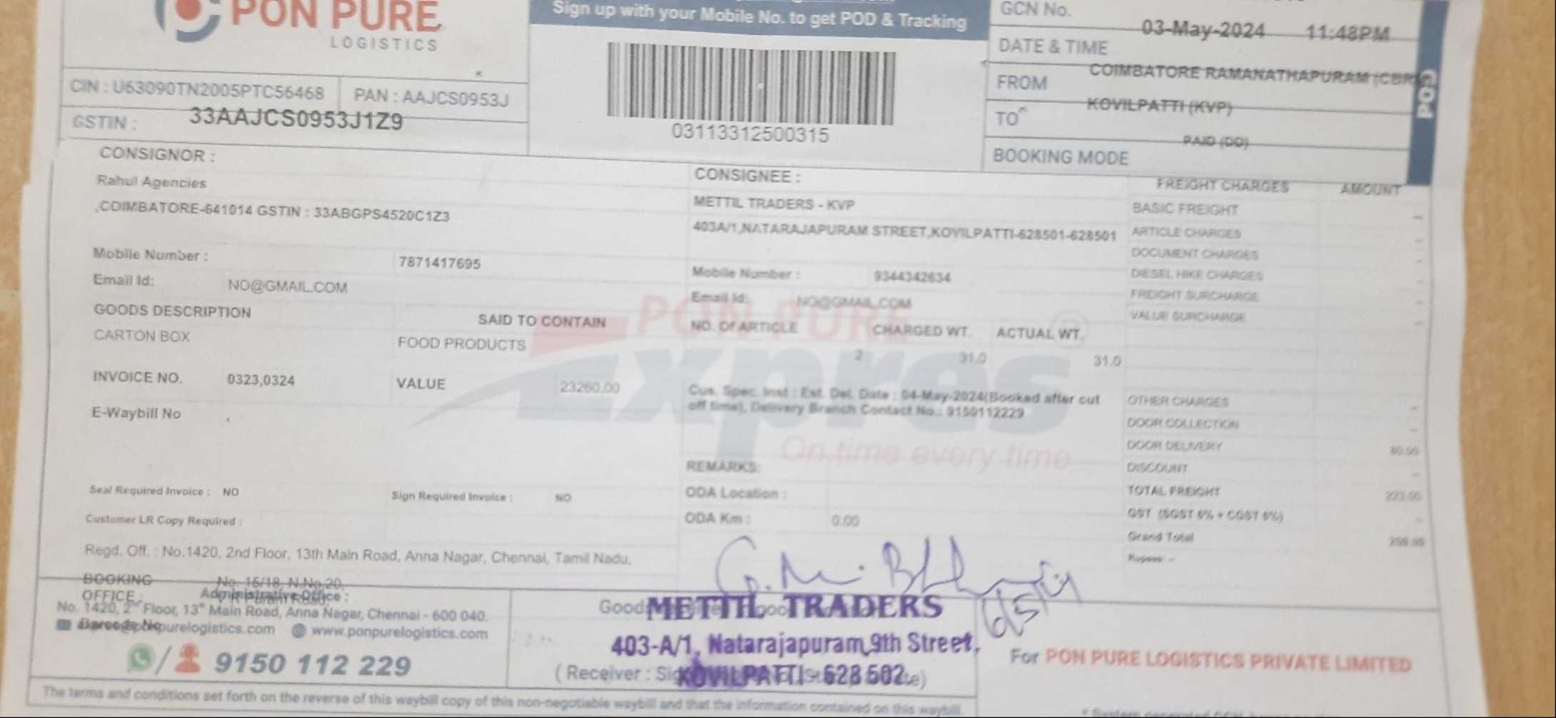 anchor.ponpurelogistics.com - /Uploadfiles/ROOT/OPERATIONS/INVOICEUPLOAD/2024/May/Paid/9/03113312500315/