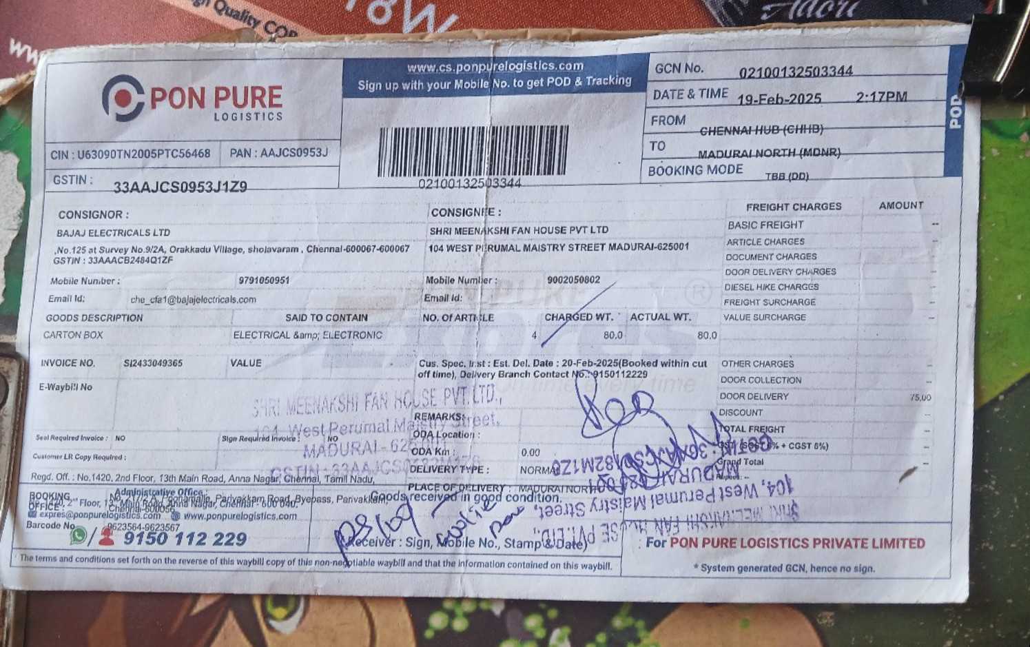 Ponpure Logistics Received by SS Admin 22-Apr-2025 11:03:43 AM